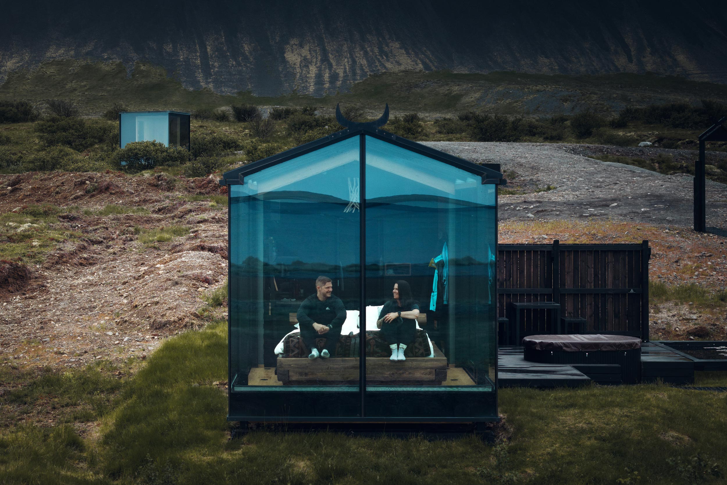 Scandinavian glass cabin igloo in viking style with amazing views. Wonderful scenery and panorama views out of your super comfortable bed or private hot tub. Have a business or location that needs quality visuals? Get in touch. Contact ranbjargar@ranbjargar.com for bookings, rating and more info
