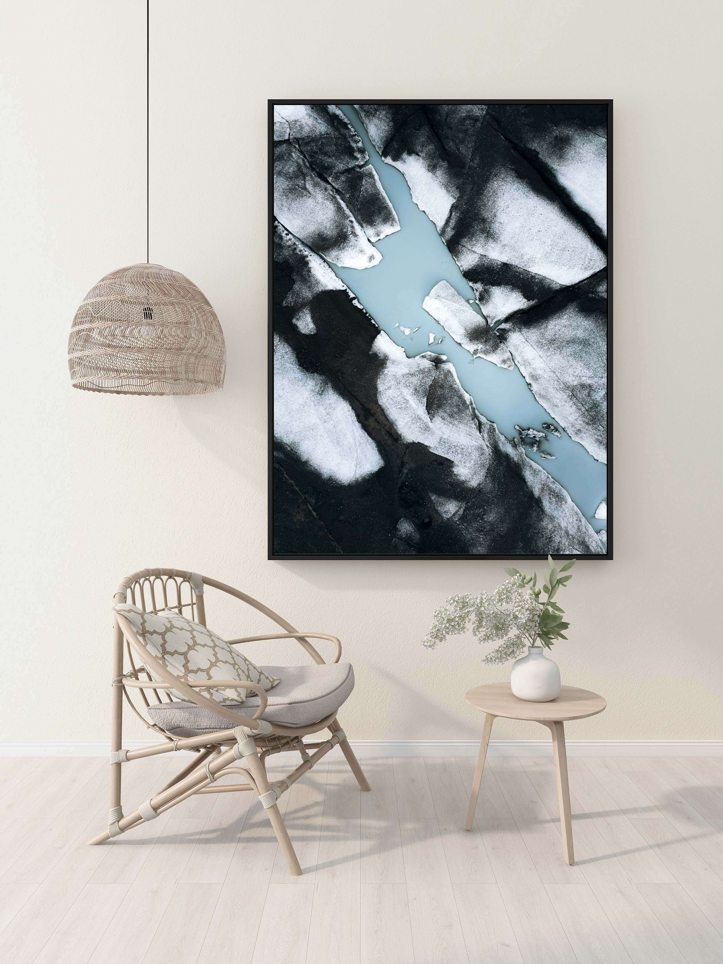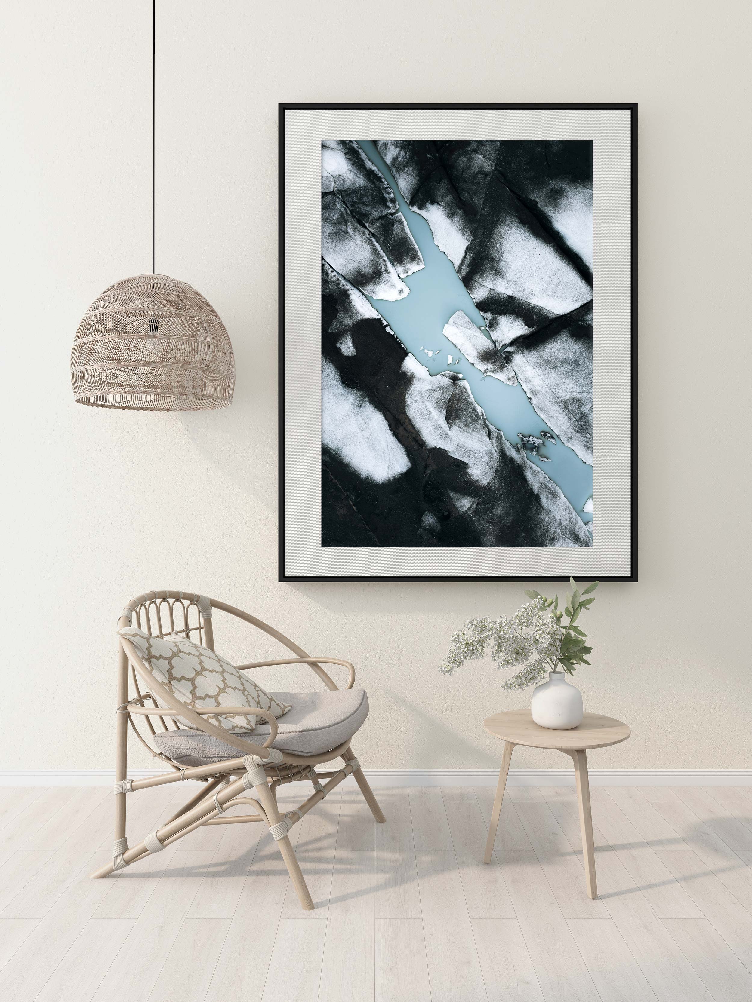 About this photo:Where broken ice opens a view into the glacial lagoon below. A brief glimpse through layers of ice and time. Taken in 2025 at Svínafellsjökull